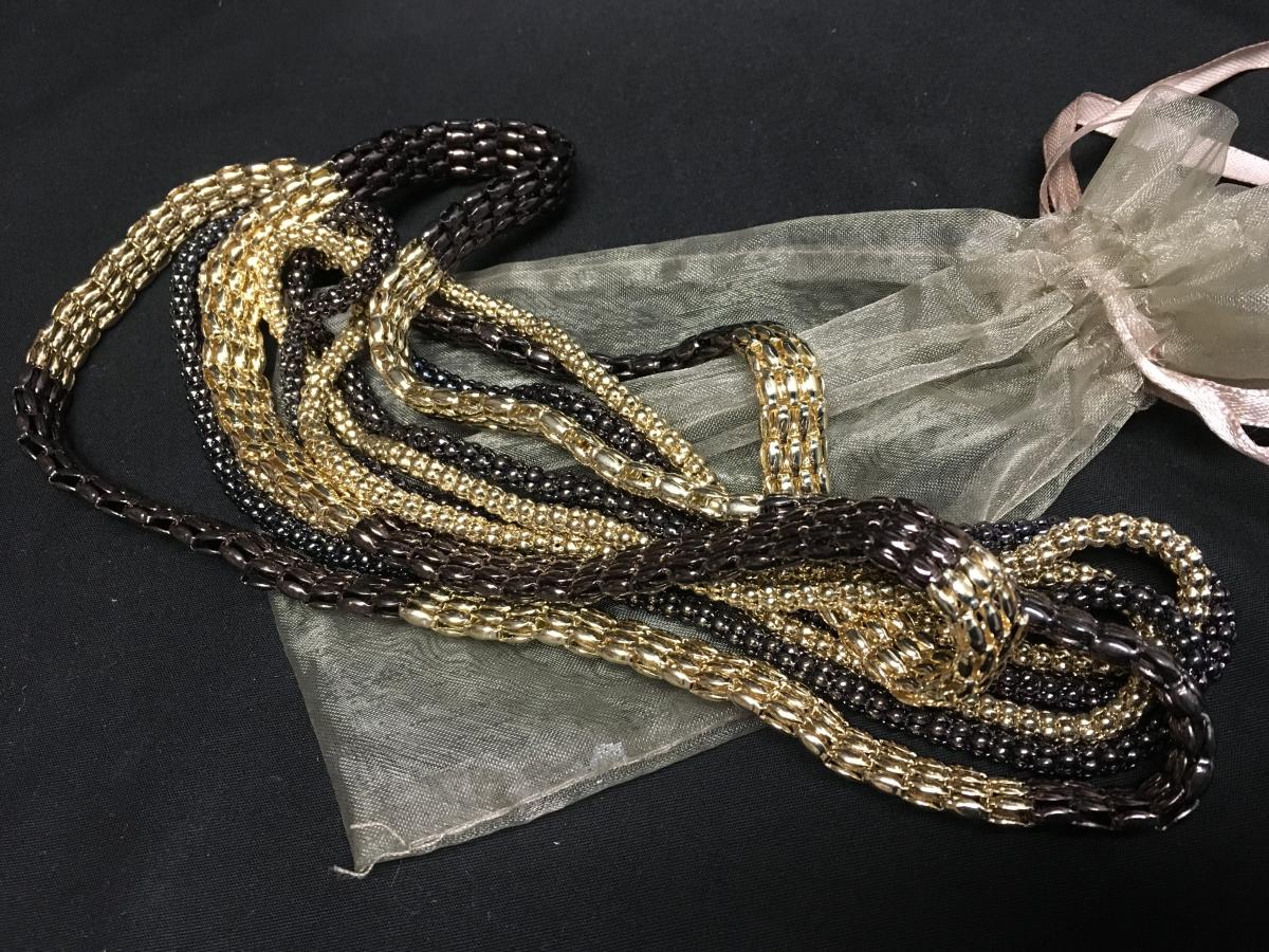 Brown & Gold Mesh Three Necklace