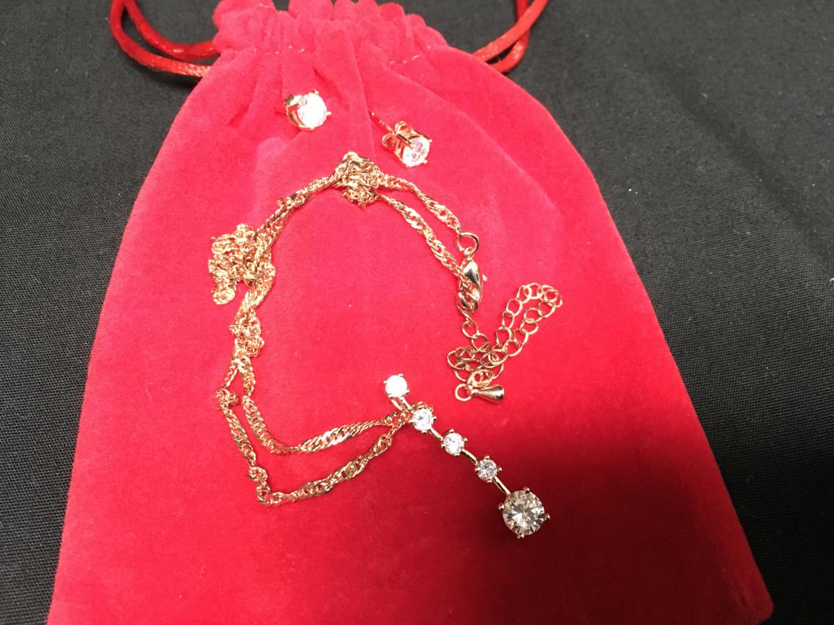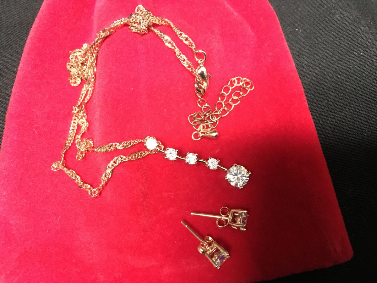 Charter Club Rose Gold Four Crystal drop Necklace and Earrings