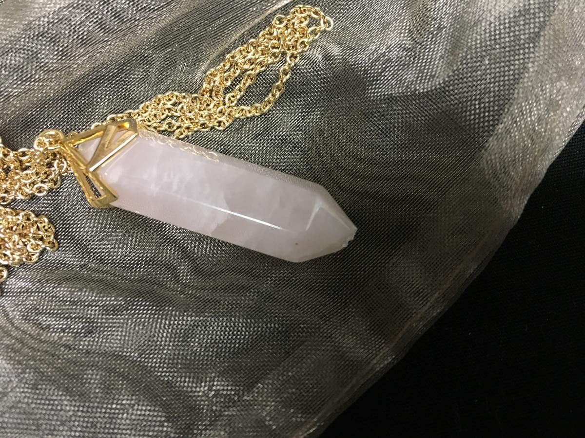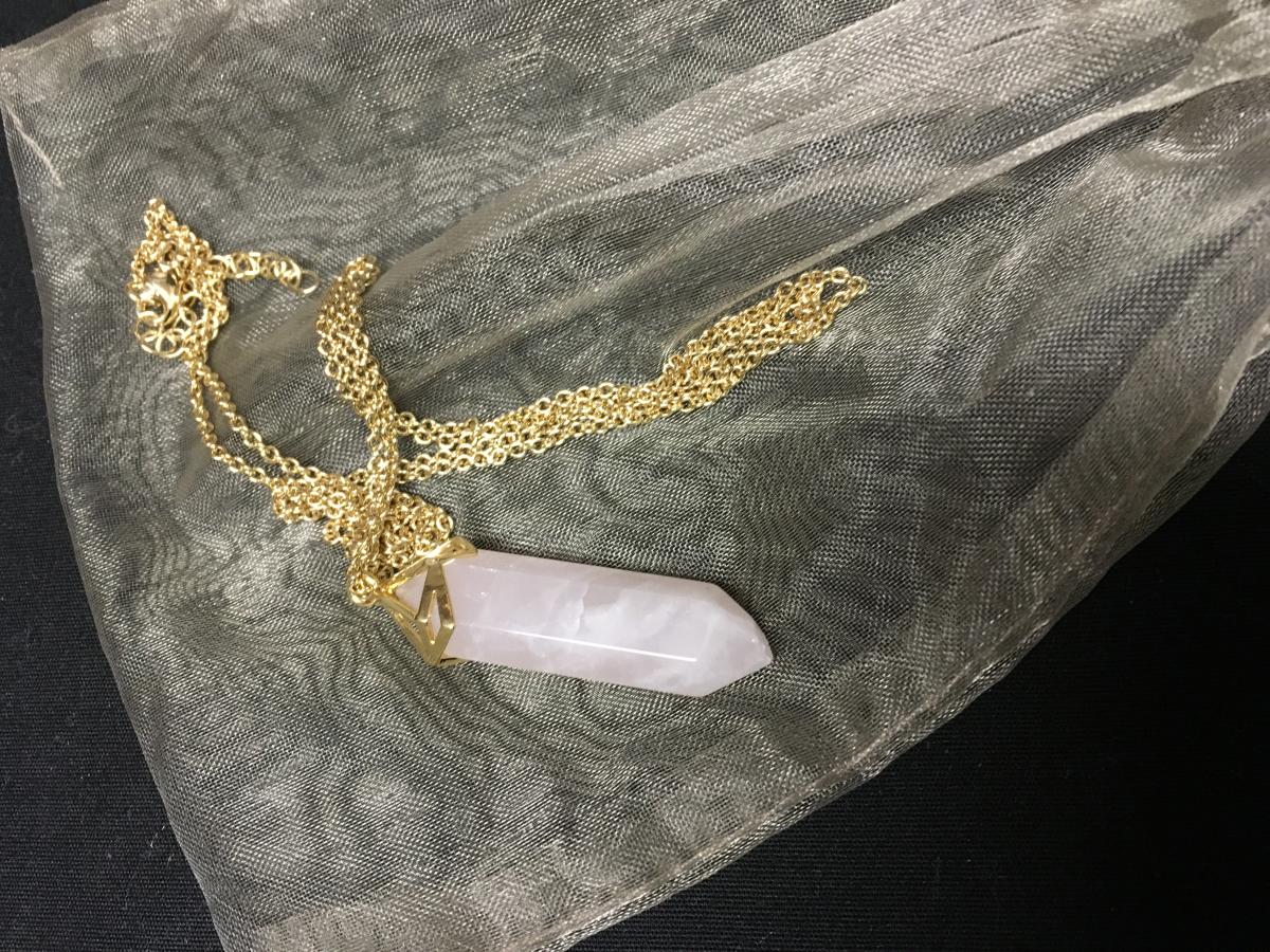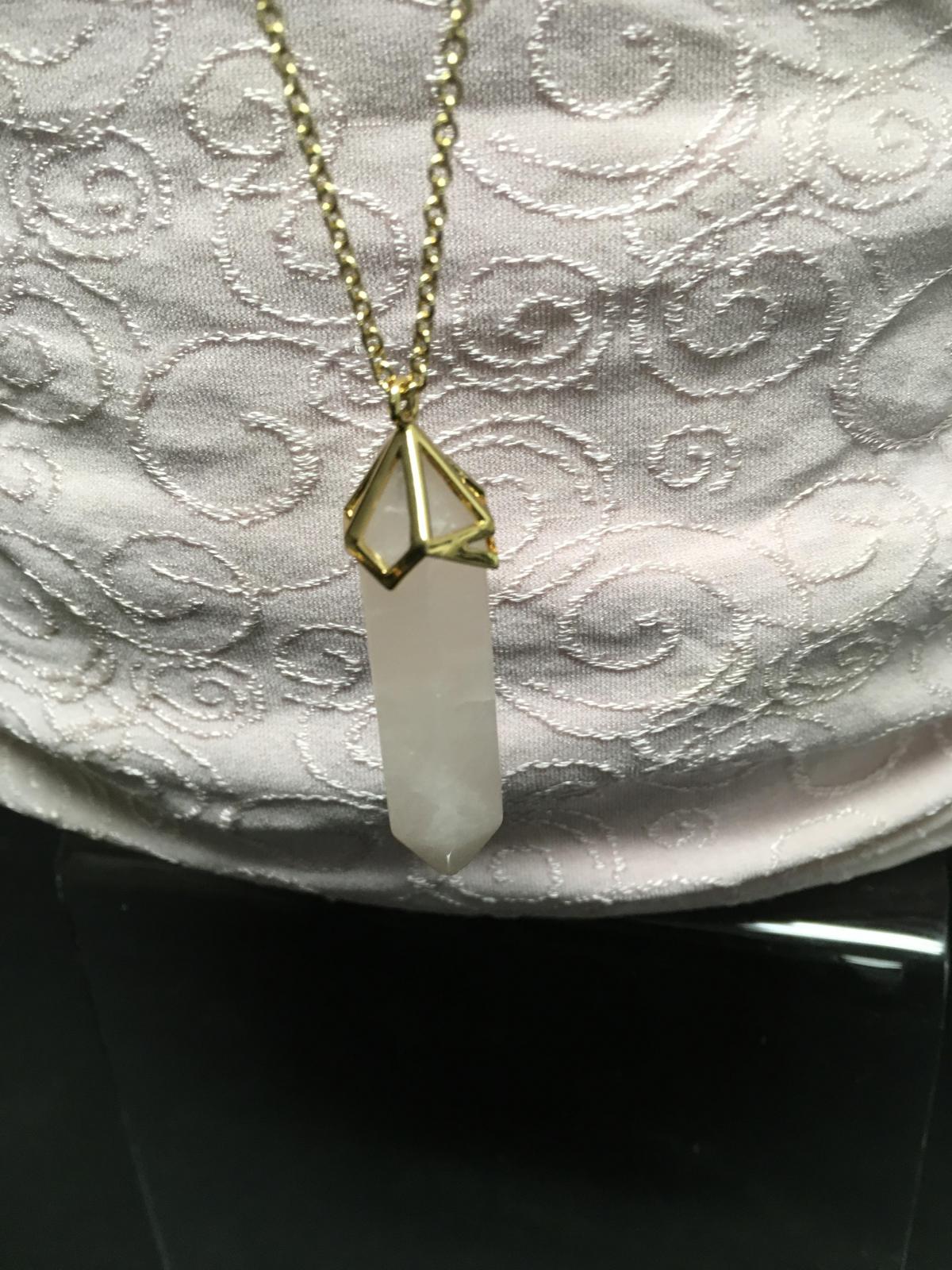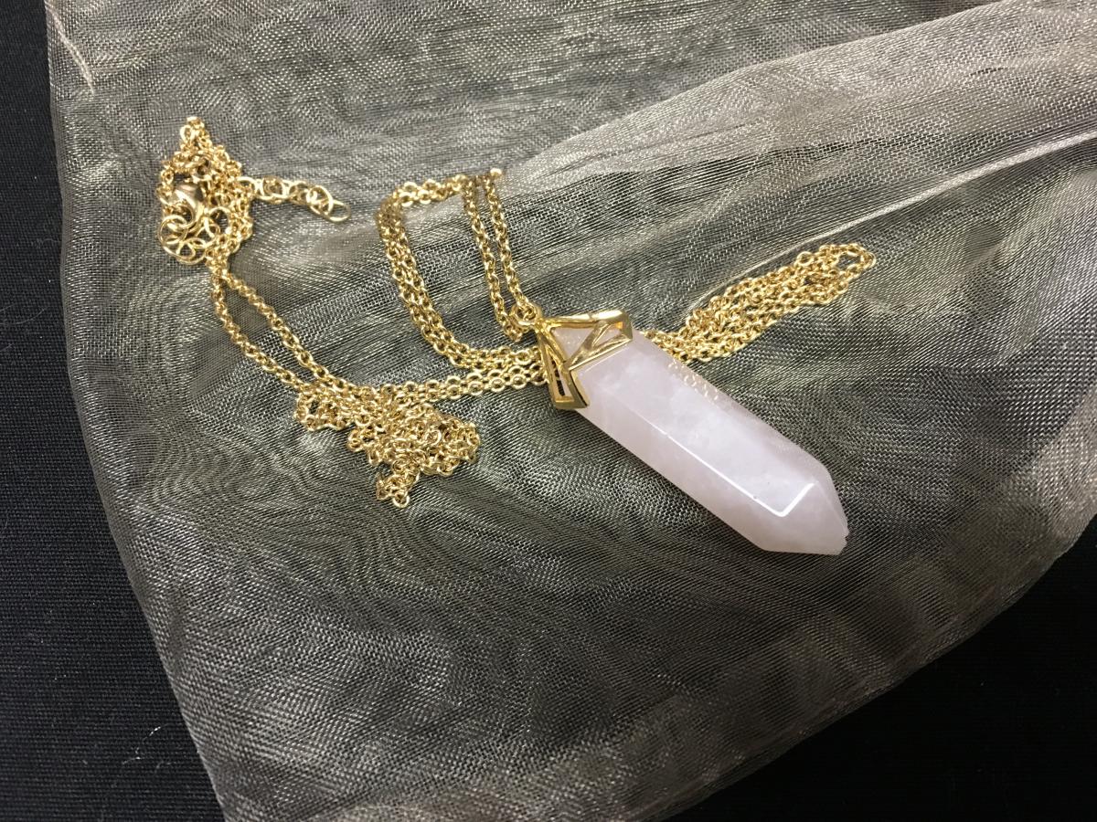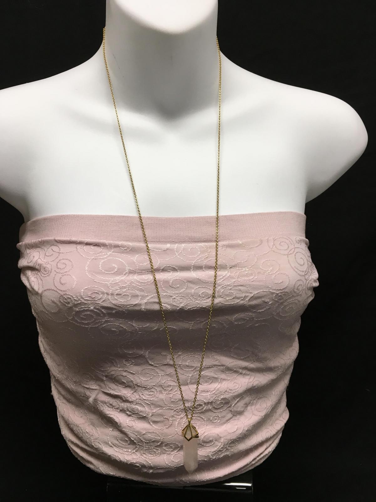 Gold-Tone Necklace with Pink Stone Pendant