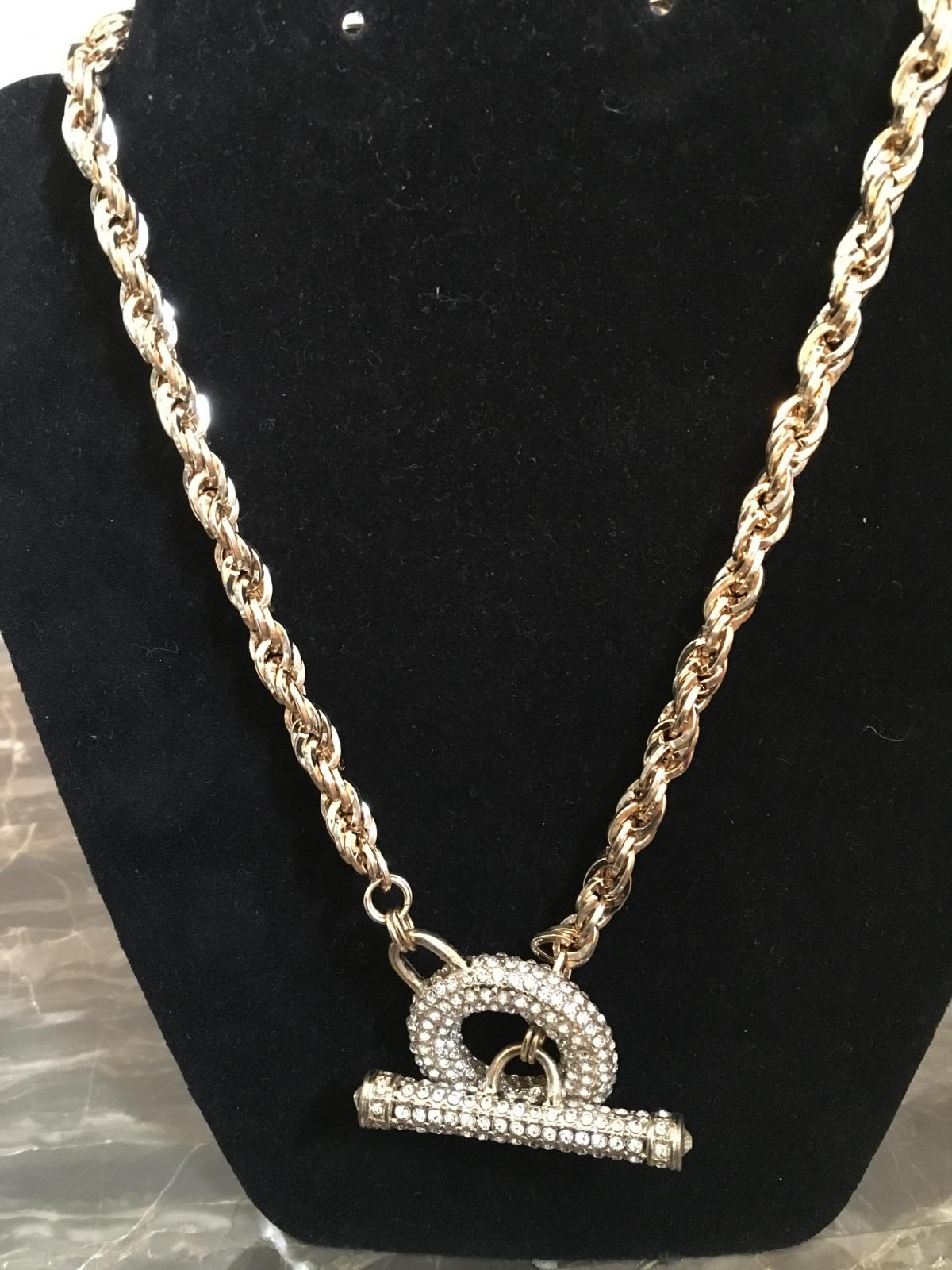 Gold-Tone Paved Crystal chain necklace w/ matching ball earrings