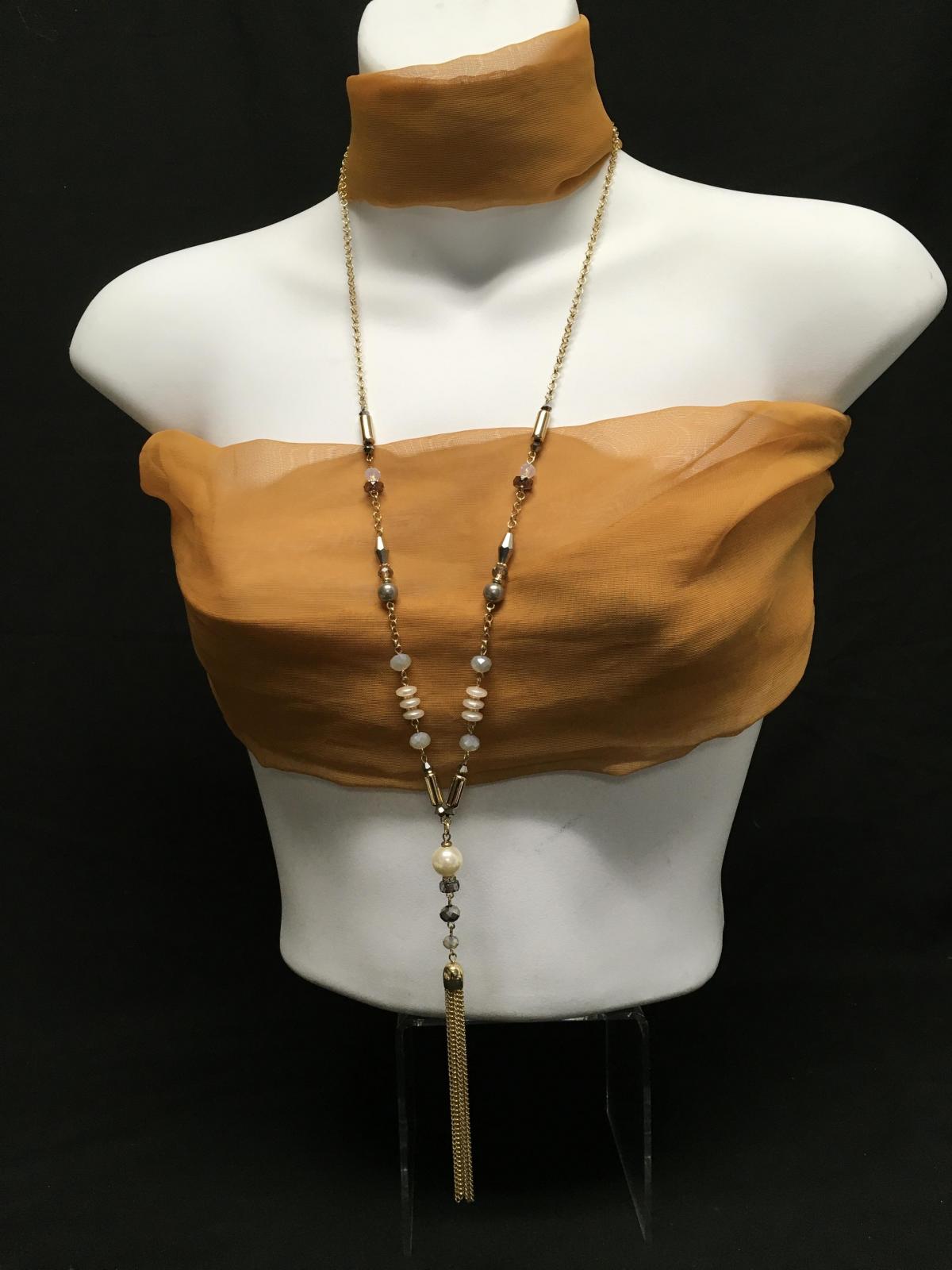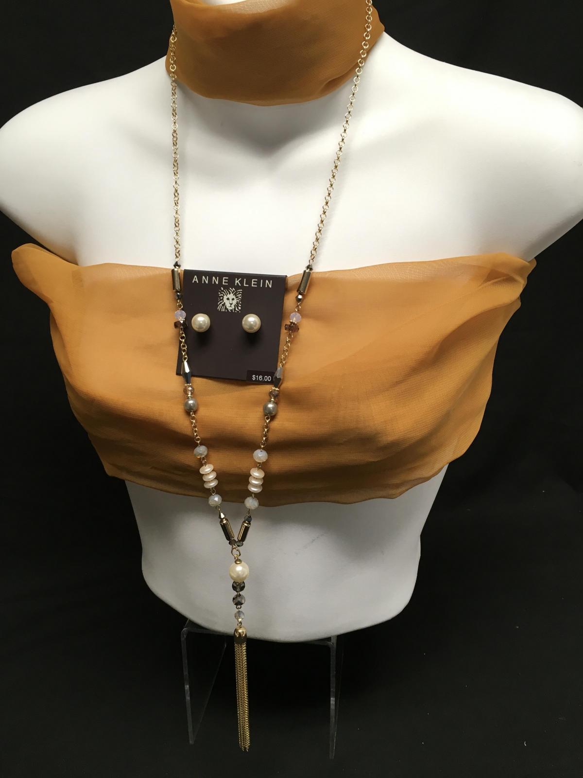 I.N.C Chanel Style “Y” Necklace / Anne Klein Pearl studs (faux)