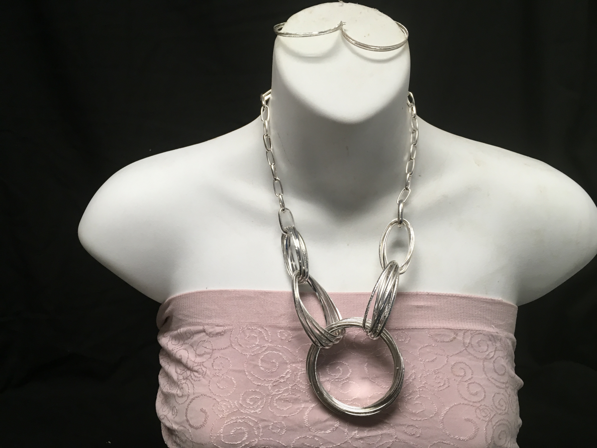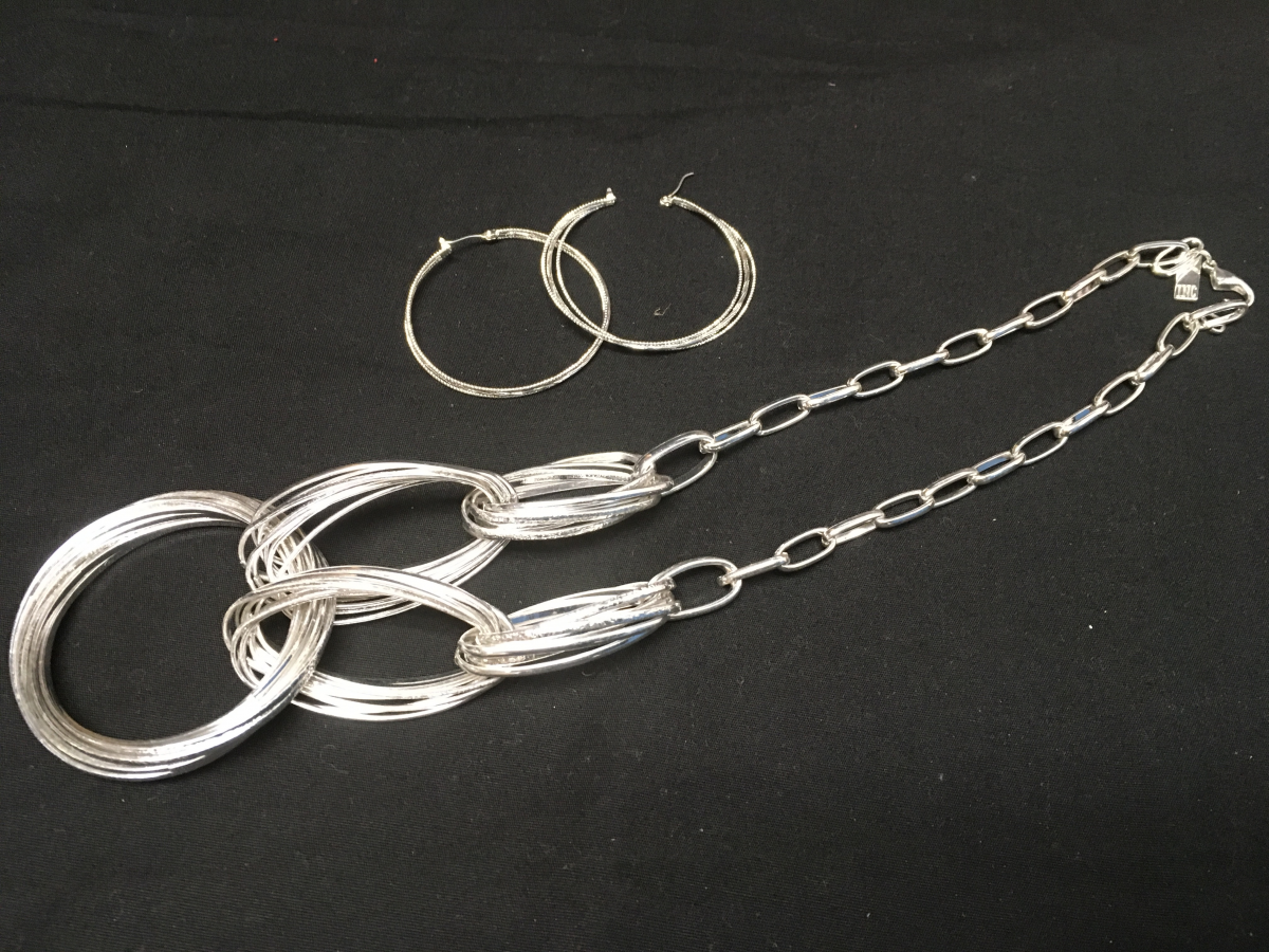 Silver looped necklace and sterling silver D/C textured looped earrings.