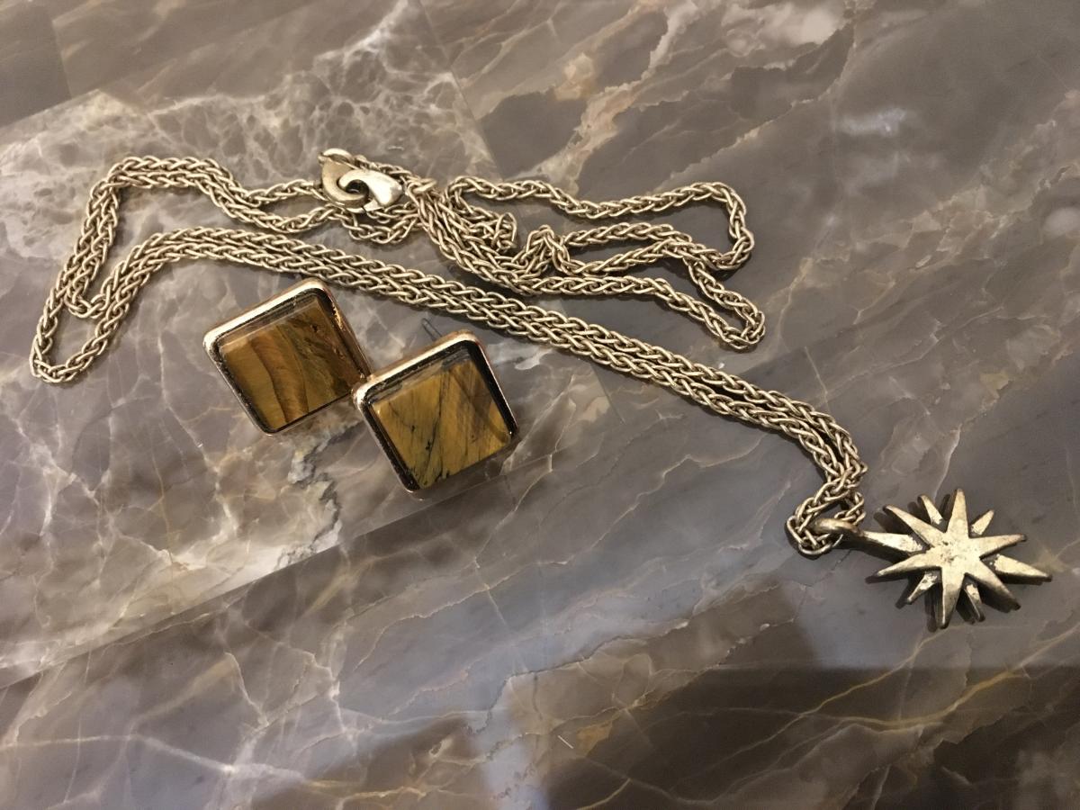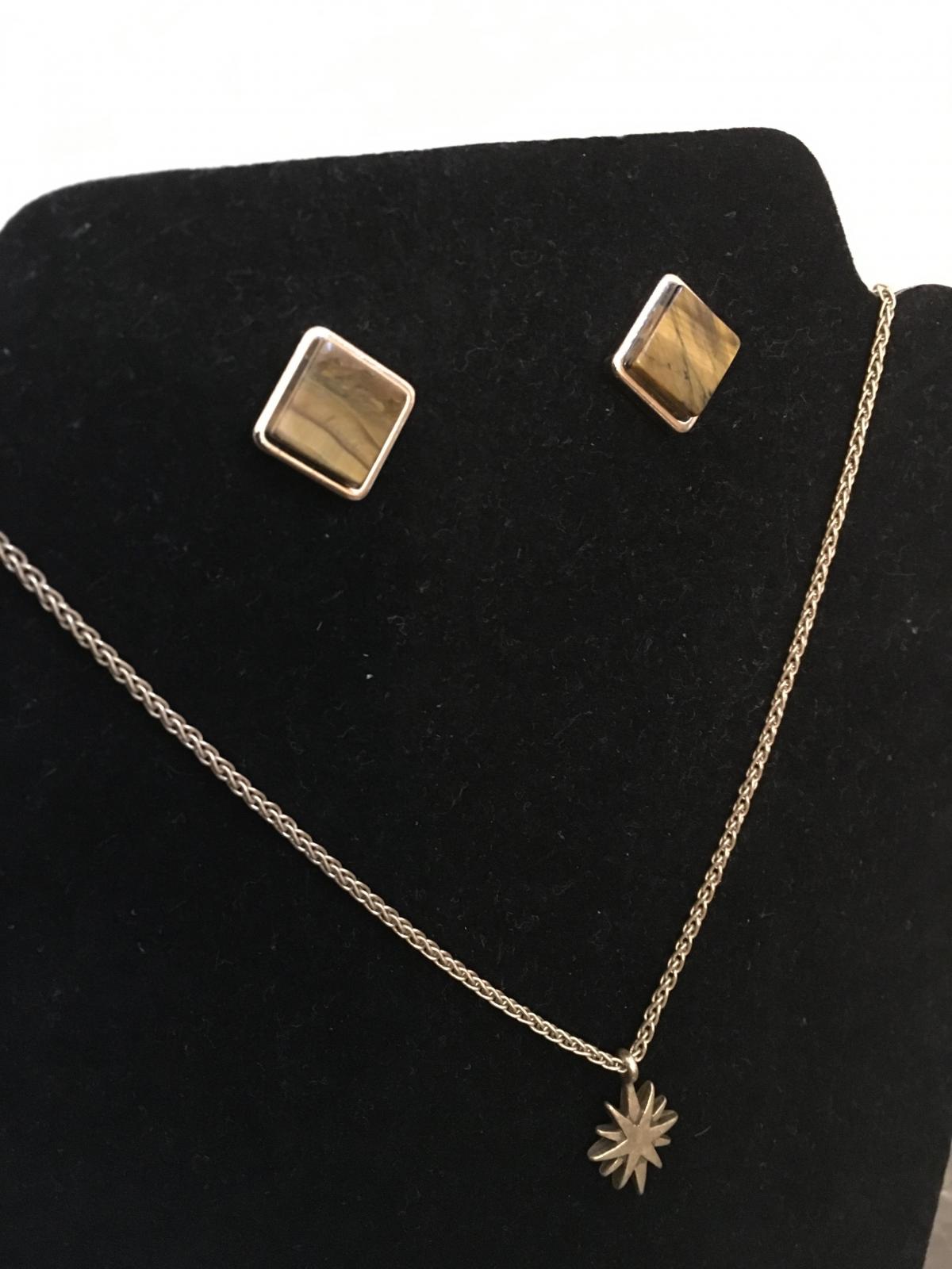Natural Elements - Tiger’s eye earrings and starburst necklace