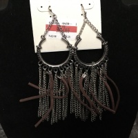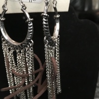Silver tone Fringe and leather earrings